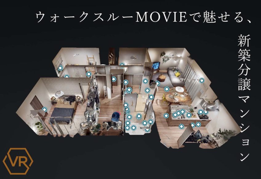 ウォークスルーアクションによる映像体験。Matterportにムービーアクションをセット、動画感覚で施設内のすべてを観れます。サービスにアクセスした者4Kビジュアルに魅了されます。