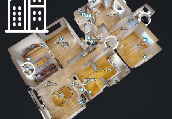 施設の世界観が瞬時にわかる"ドールハウス"手に取るかの如くの施設情報キャプチャ。リアルサイズをミニマルに縮小することで空間と空間の関係性が明確にわかります。Matterportの生み出す圧倒的クオリティが全方向での施設観賞を実現します。